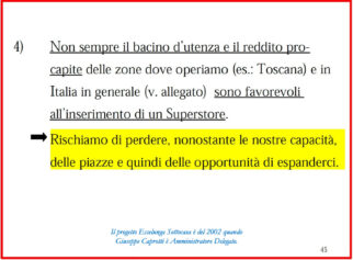 Di Giuseppe Caprotti, Negozi di piccole dimensioni (documento interno, 2002)
