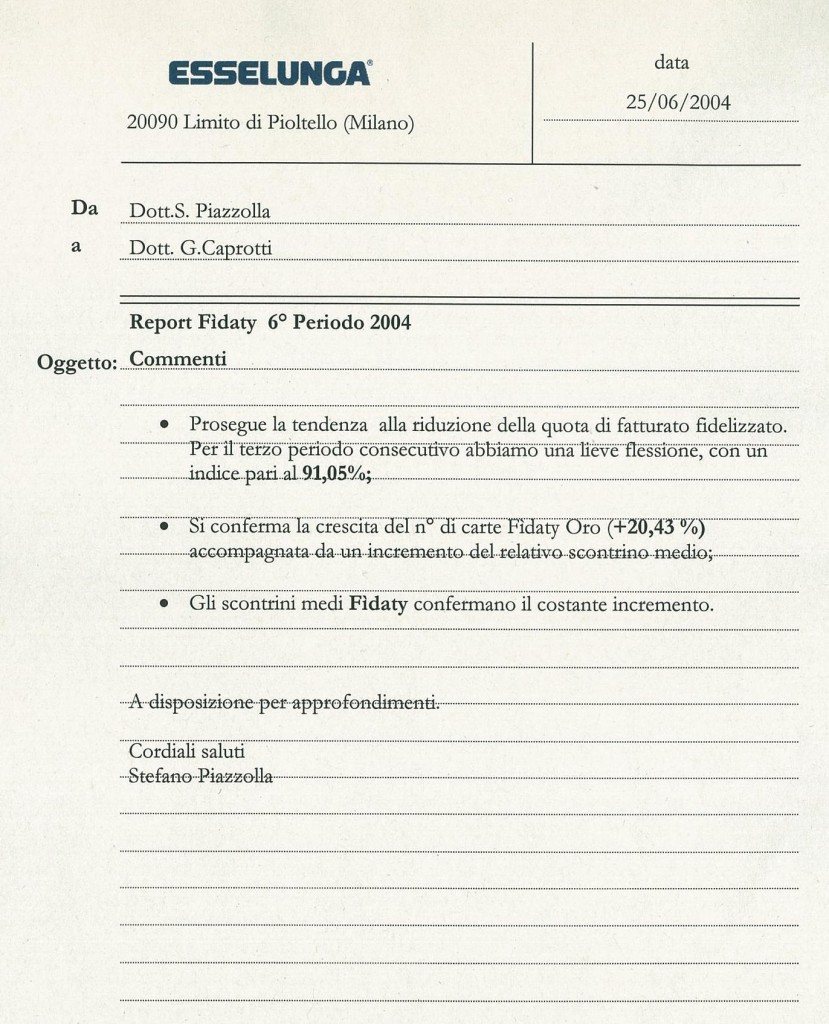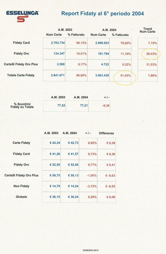 La discrepanza tra fatturato fidelizzato (91,05 %- in proposito vedi anche Dai supermercati ai superstore 5.) e scontrini fidaty (77,21%) era dovuta alla soglia d’entrata di utilizzo e ricevimento punti (10 €).