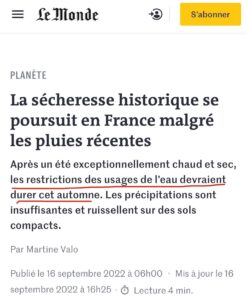 Questa è stata l’estate più calda dal 2003. Ma sembra essere anche l’autunno più secco, come faceva notare Le Monde a settembre (sotto).