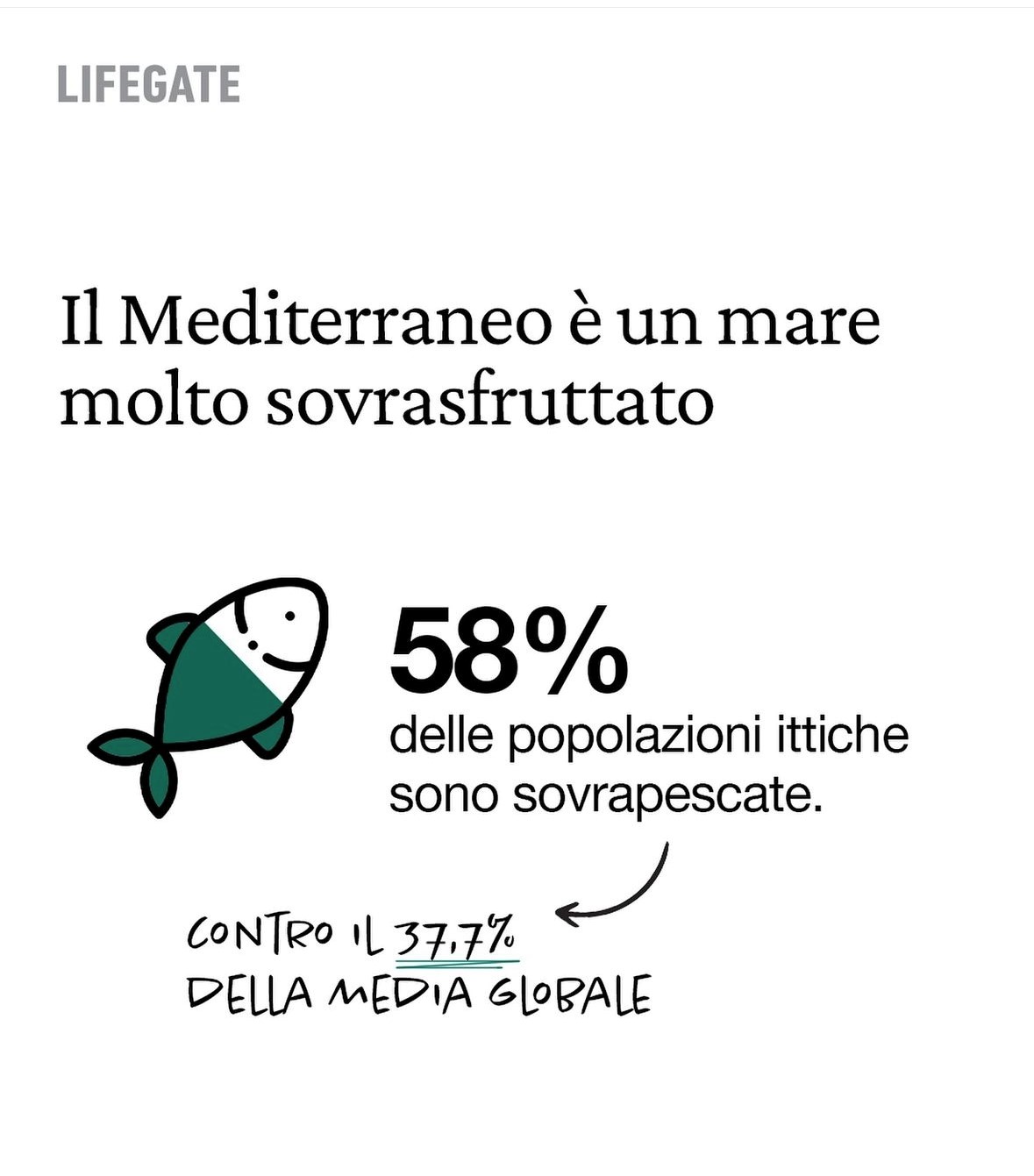 Nel Mediterraneo il 58 per cento delle popolazioni ittiche sono sovrapescate, contro il 37,7 per cento di quelle sovrasfruttate a livello globale. Ogni cittadino europeo consuma in media circa 24 chili di pesce l’anno con gli italiani superano la media con 31,21 chili di pesce pro capite l’anno.