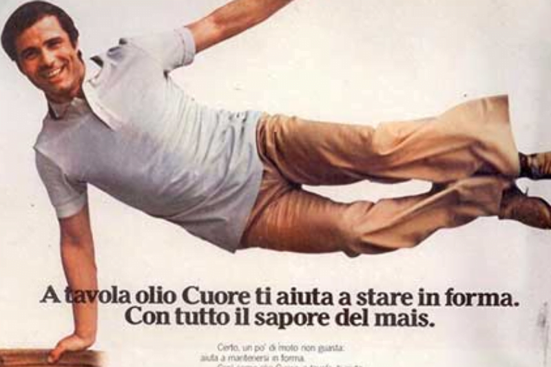 Sotto : Nino Castelnuovo nello spot pubblicitario per l’olio Cuore che è del 1982
