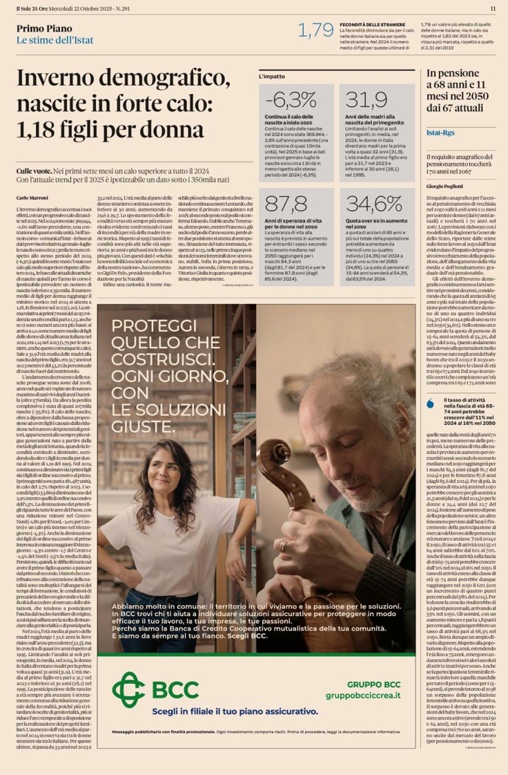 E ricordiamoci che questo argomento si incrocia con quello della sanità italiana che è al collasso : come verranno curate tutte queste persone anziane e sole?