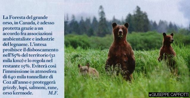 in Canada, ad esempio, è appena stato siglato un accordo a protezione (*) della Great Bear Rainforest (3,6 milioni di ettari), dove abita l’orso Kermode, e di 26 comunità di “indiani” del Nord America.