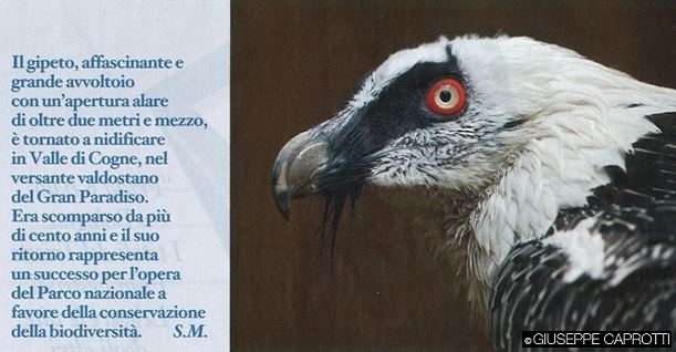 Il gipeto, affascinante e grande avvoltoio con un’apertura alare di oltre due metri e mezzo, è tornato a nidificare in Valle di Cogne, nel versante valdostano del Gran Paradiso. Era scomparso da più di cento anni e il suo ritorno rappresenta un successo per l’opera del Parco nazionale a favore della conservazione della biodiversità S.M. Io Donna 23 gennaio 2016
