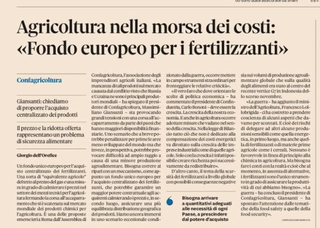 Sotto : l’appello del 15 dicembre 2022 di Confagricoltura