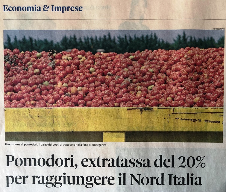 - la logistica ha subito degli incrementi di prezzo spaventosi (vedi titolo de Il Sole 24 ore del 15 aprile sotto)