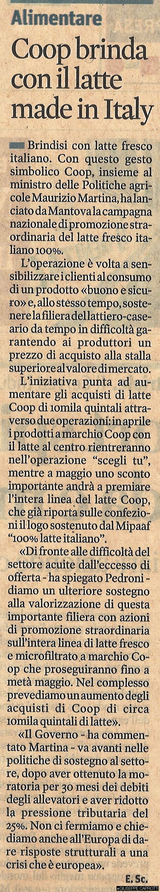 E interviene anche la Coop, che prevede di acquistare “10 mila litri di latte in più” (su quale periodo non è dato di sapere..)