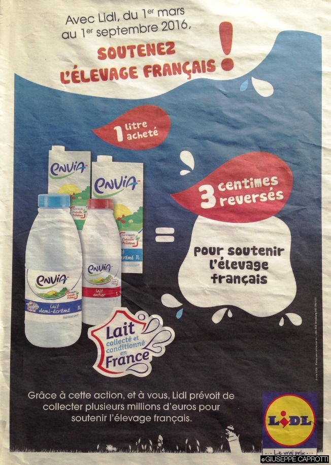 paradossalmente sono due discount, in Francia e in Italia, che fanno campagna per l’utilizzo del latte italiano