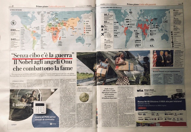 Sotto : “senza cibo c’è la guerra” (Repubblica 10 /10/ 2020) che trovo molto pertinente e attuale.