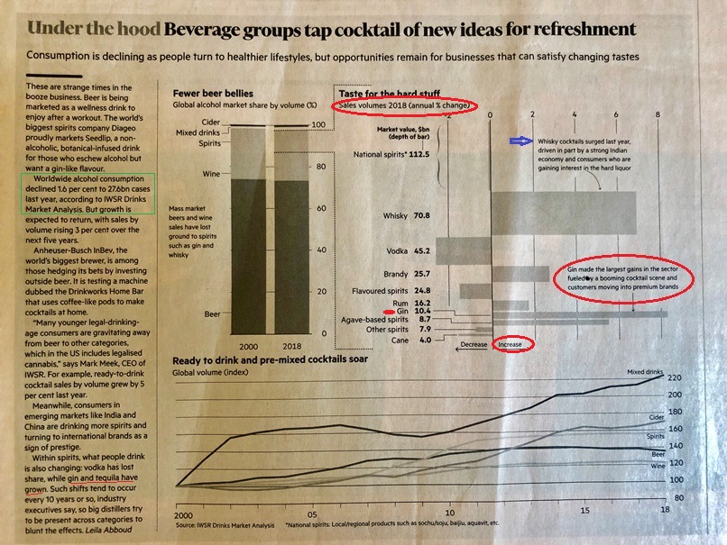 Alcolici : salgono gin , whisky e tequila. Scendono birra e vino