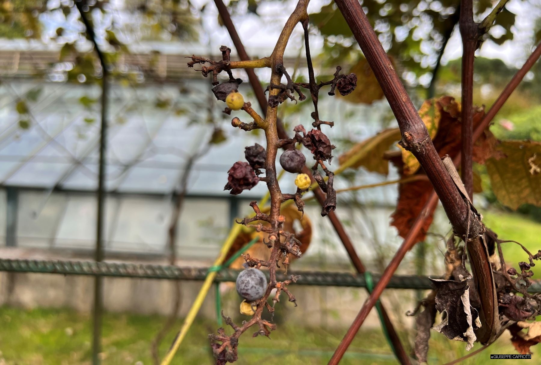 Sotto vedete l’unico grappolo d’uva prodotto dalle nostre viti quest’anno.