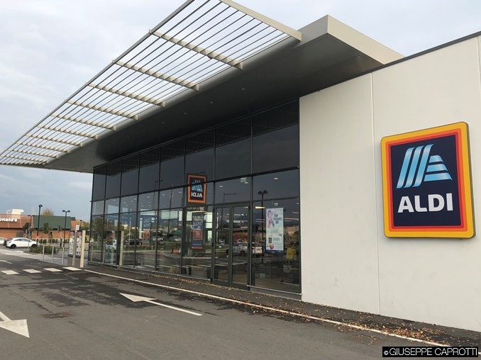 Sotto: un’immagine dell’ Aldi appena visitato da Giuseppe Caprotti