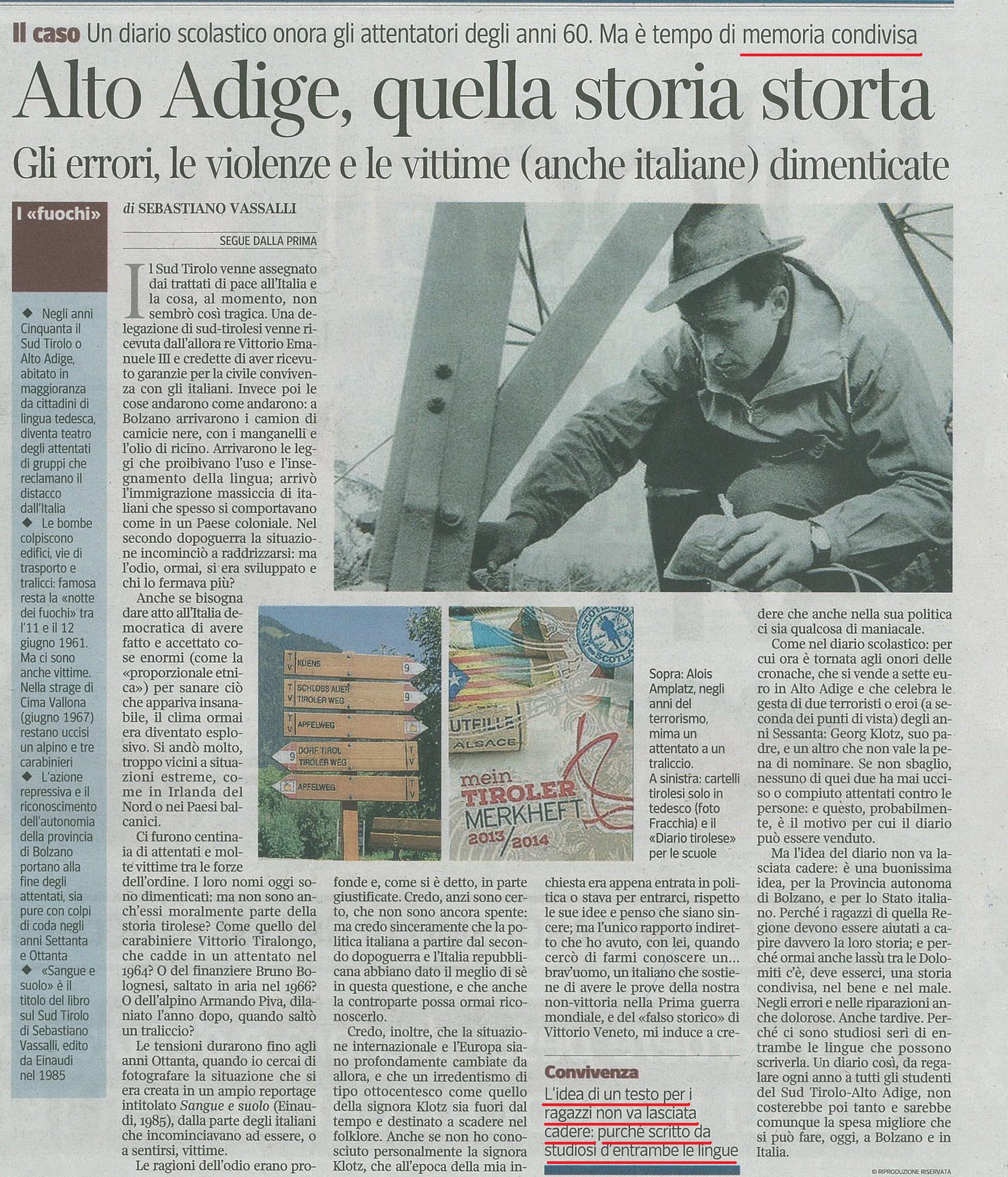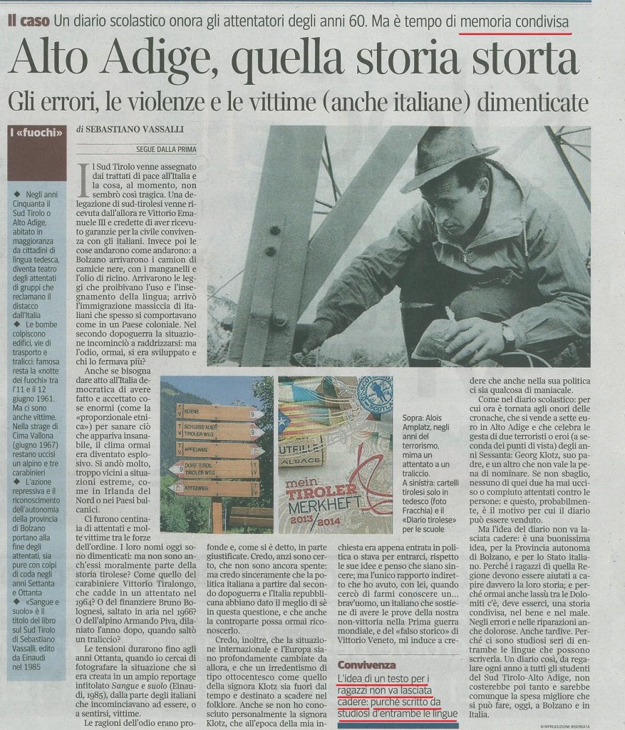 Sebastiano Vassalli, martedì 27 agosto sul Corriere segnalava questa iniziativa della “solita” Klotz e proponeva di riprenderla in chiave riconciliatoria, affermando – giustamente, secondo noi – che si dovrebbe arrivare ad una “memoria condivisa”.