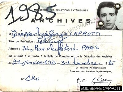 la mia tessera per entrare agli archivi del Ministero degli Affari Esteri (il Quay D’Orsay)