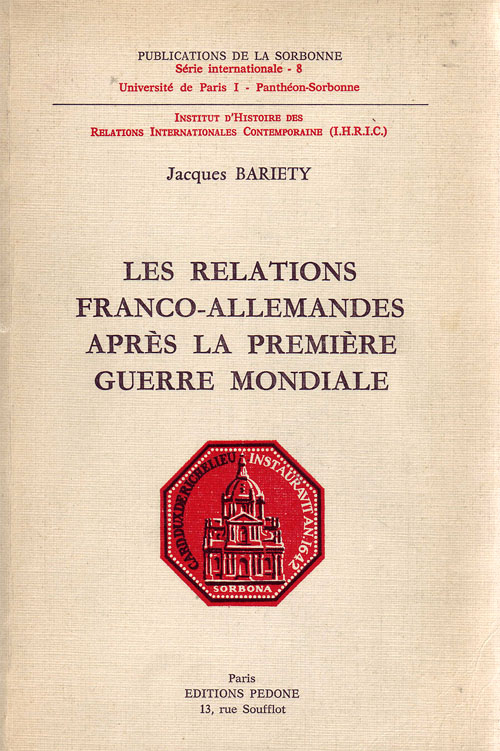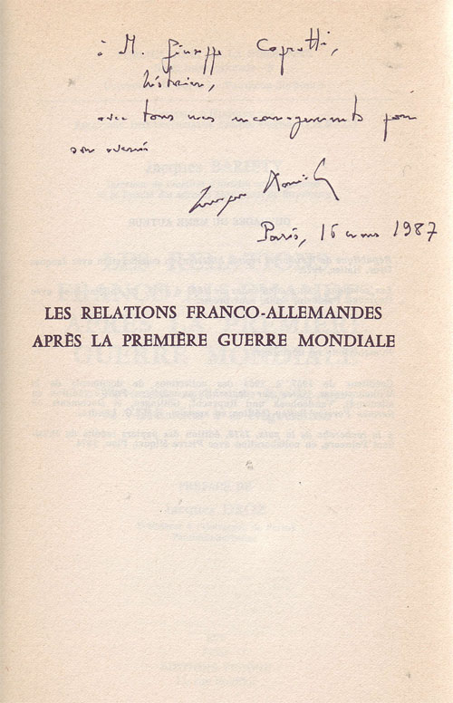 Nell’aprile 1987 venni a sapere dal mio professore che il capo archivista del Ministero degli Esteri francese, Georges Dethan, aveva usato alcuni brani del mio lavoro e li aveva pubblicati, senza la mia autorizzazione né quella di Bariéty, su la “Revue d’Histoire diplomatique”. L’articolo era firmato dal prof. Pierre Guillen