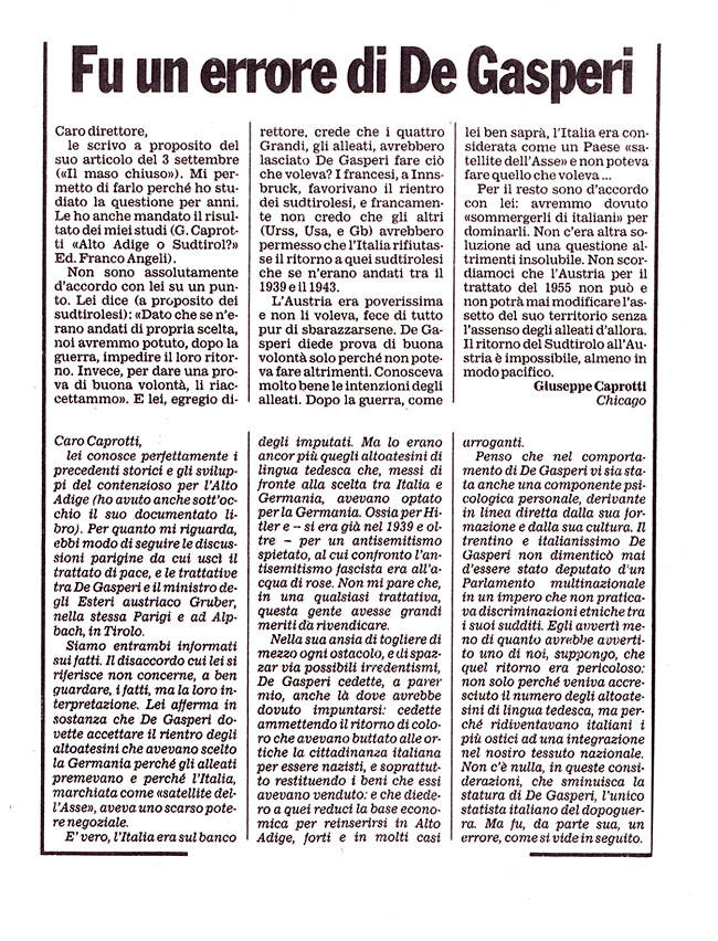 Gli altri articoli furono pubblicati su Il Gazzettino, il Corriere di Pordenone, Alto Adige, la Gazzetta di Reggio, Il Trentino, Il Secolo XIX , etc.
