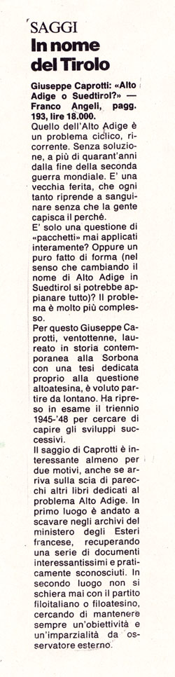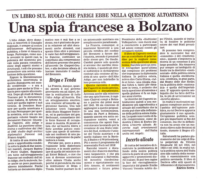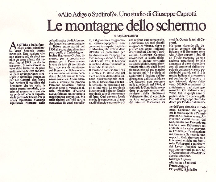 Spy stories a parte, la questione era resa più interessante dal fatto che si trattava di una questione locale ma eminemente europea : all’epoca gli screzi su questa vicenda bloccavano l’adesione alla CEE dell’Austria che aveva bisogno dell’appoggio dell’Italia per entrarvi.