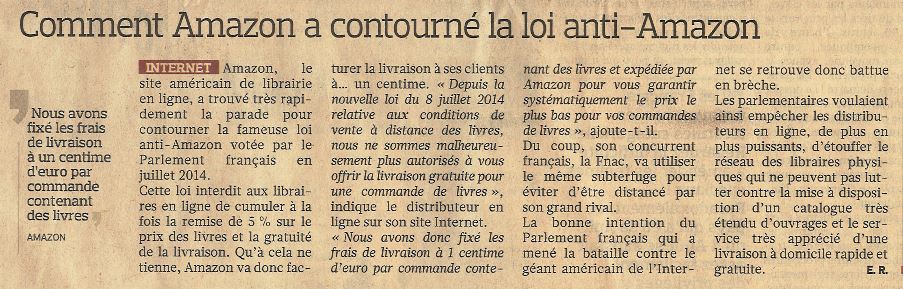 Il parlamento francese aveva recentemente varato una legge che vietava la vendita di libri con lo sconto del 5% e la consegna gratuita in contemporanea.