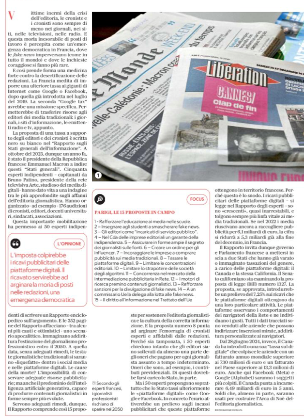Solo il Canada ha varato una web tax e la California la sta esaminando (AF Repubblica del 7 ottobre 2024) .