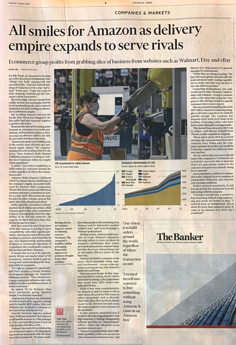 Amazon fa consegne per i concorrenti (tra i quali Walmart) nell’e-commerce USA
