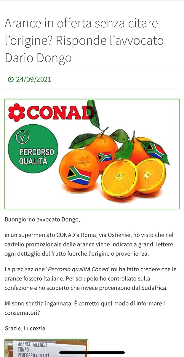 Arance in offerta senza citare l’origine? Può indurre in errore il consumatore
