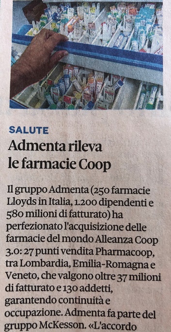 Coop Alleanza 3.0 : farmacie rilevate da Admenta