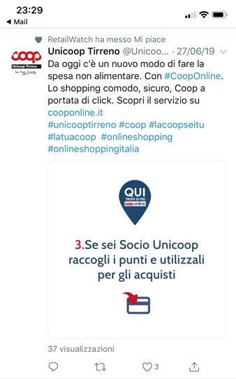 Coop Alleanza 3.0 di fronte ai pessimi risultati ha dovuto dismettere le farmacie. Il Sole 24 ore del 2 giugno 2019