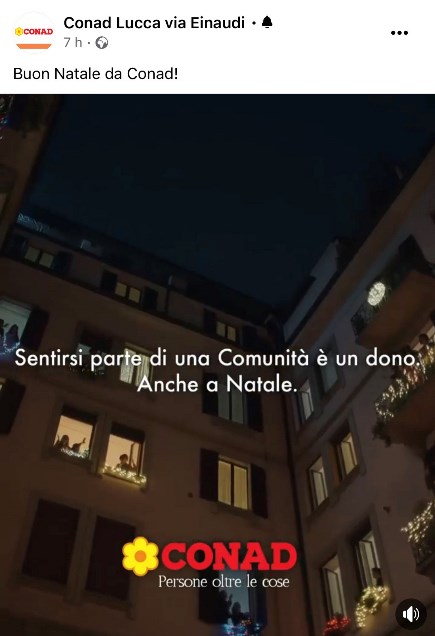 Sotto : un immagine dell’ultima pubblicità della Conad (Natale 2020).