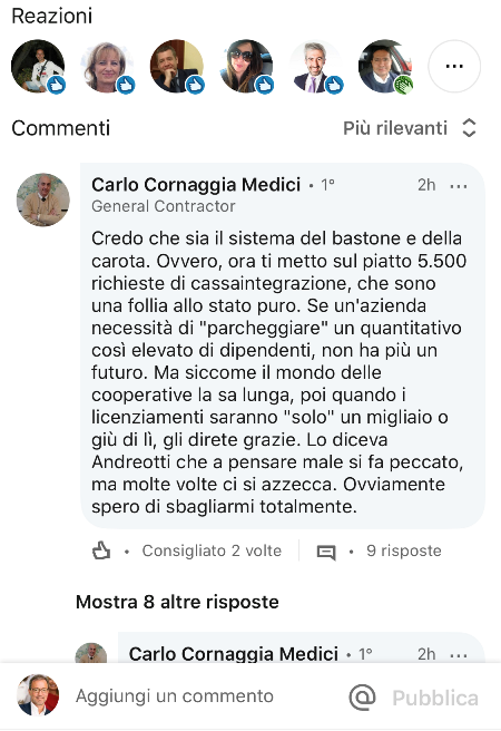 - Sotto un commento , secondo me, pertinente sulla cassa integrazione richiesta