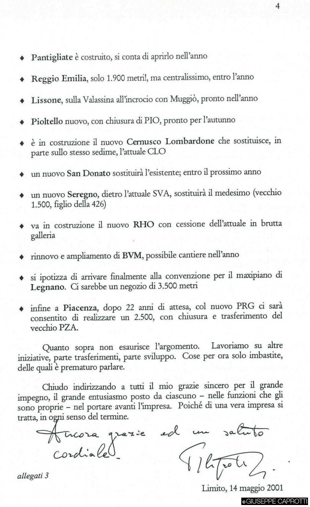 la 3 e la 4 , riguardanti le aperture dei nuovi supermercati e superstore, sono state inserite solo perchè alla fine c’è la firma di Bernardo Caprotti