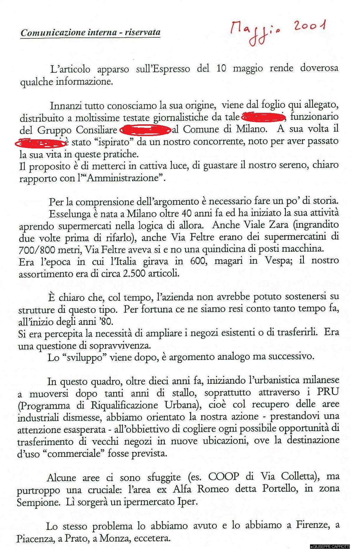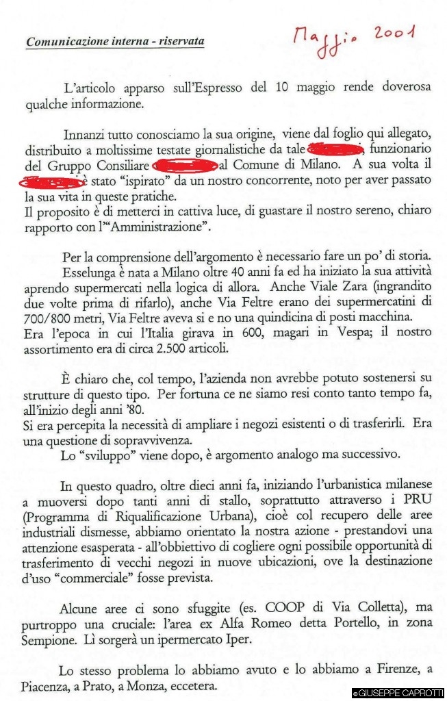Quella che segue è una nota interna, inviata a tutti i dirigenti di Esselunga, relativa a questo articolo de L’Espresso