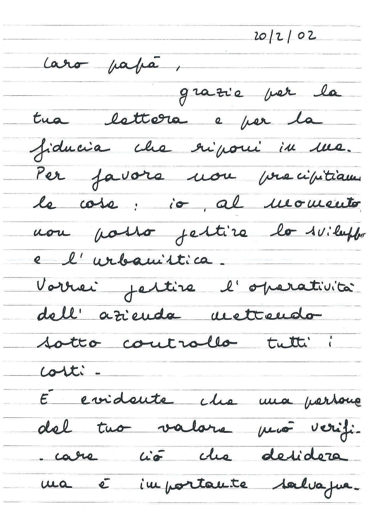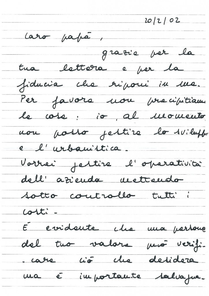 Pochi giorni dopo questa lettera, mio padre si risentiva che non l’avessi avvisato di una riunione sulle planimetrie di alcuni superstore e, dimentico di tutte le lettere già recapitate al personale (v. supra “Riservata, discreta“), tornava tranquillamente al “suo posto”.
