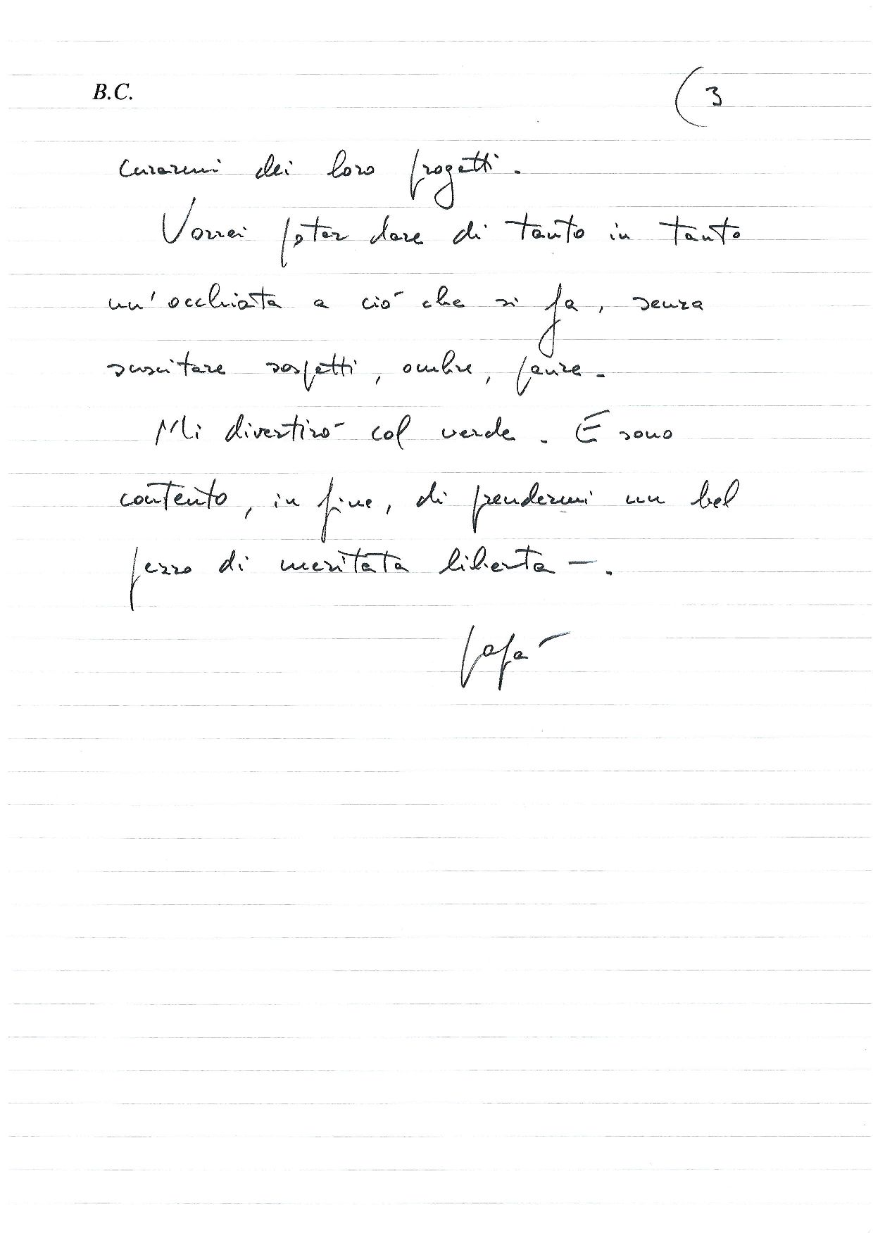 Tornando al ritiro di Bernardo del 2002 lui scriveva a me ma anche a tutti i dirigenti, che sarebbe rimasto a “dare uno sguardo a tutto” ciò che gli piaceva.