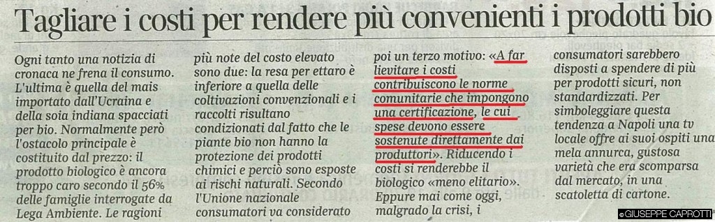 Lubrano segnala che il numero degli enti pesa anche sul costo dei prodotti bio