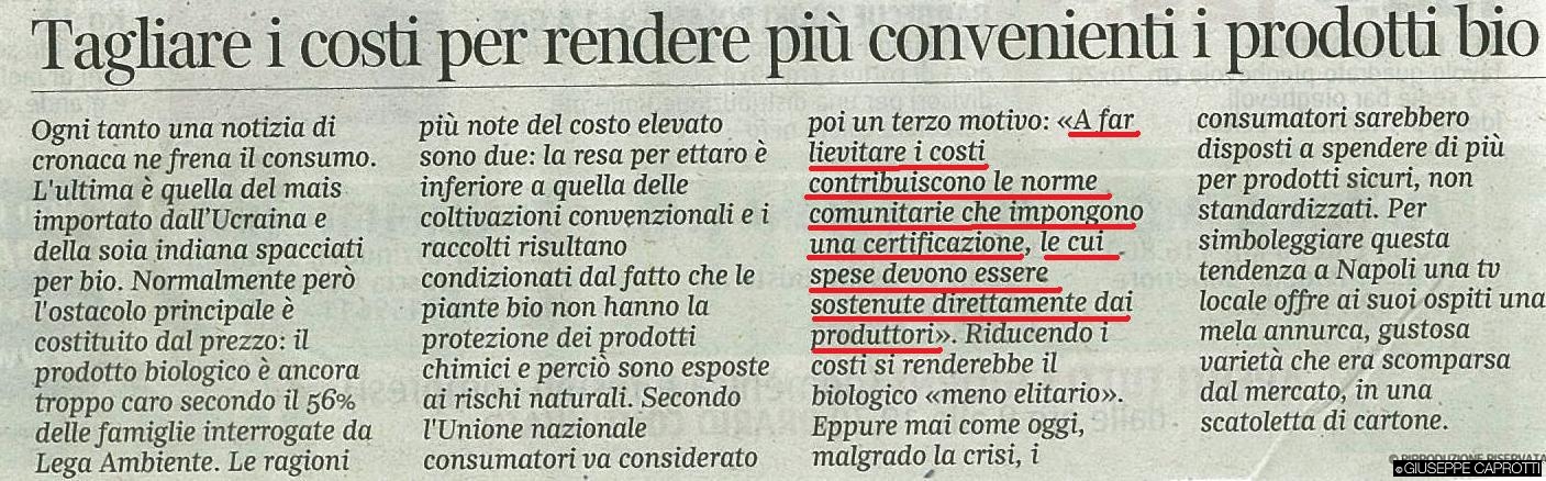 L’alto numero degli enti è comunque, sicuramente, il vero punto debole del bio la cui autenticità è difficilmente controllabile e soggetta a frequenti truffe, v. sotto