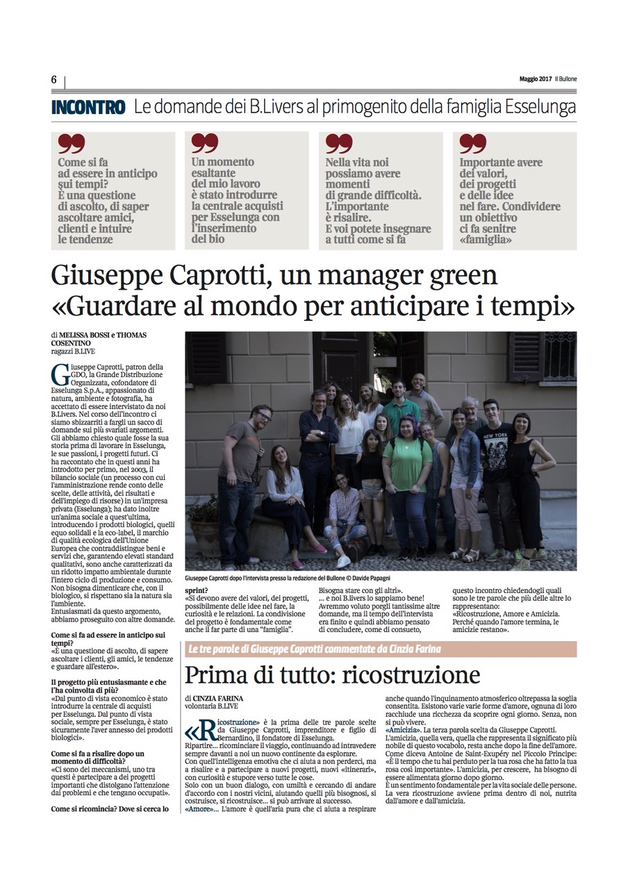 Il Bullone, giornale dei B.Livers, intervista Giuseppe Caprotti