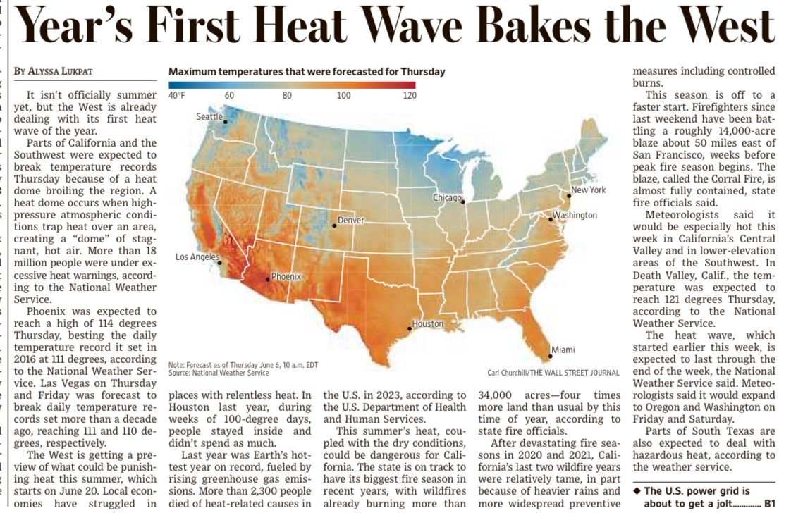 Se ne occupa, ad esempio, The Wall Street Journal , con le ondate di calore negli USA, che seguono quelle appena avvenute in India.
