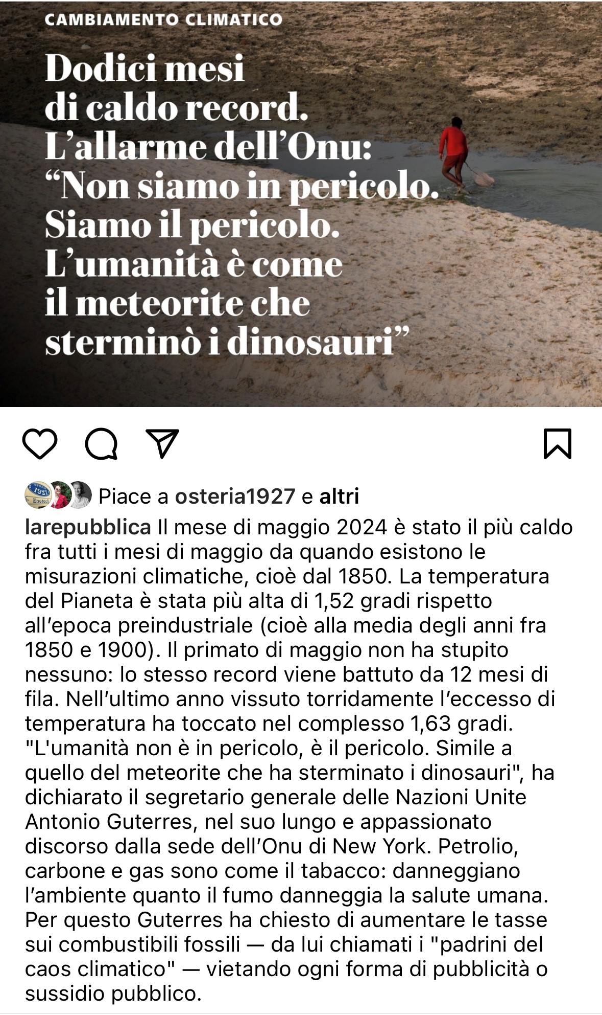 Ovviamente l’approvigionamento del cibo è a rischio in alcune zone del pianeta.