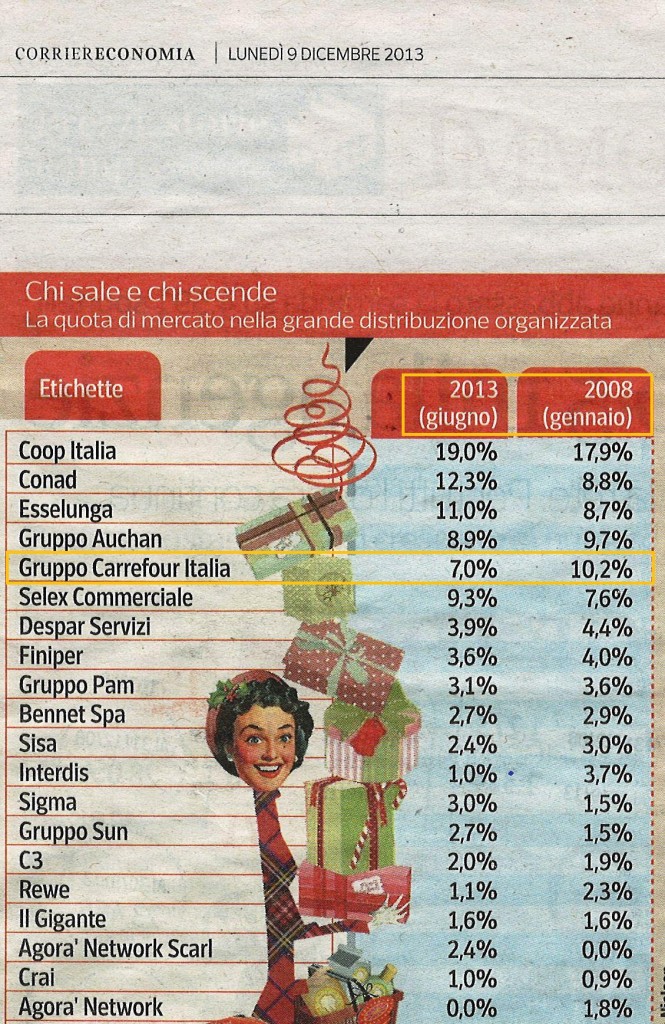 Se è vero che Carrefour è scesa dal 2° posto al 4° come distributore globale perchè ha venduto parecchie attività…