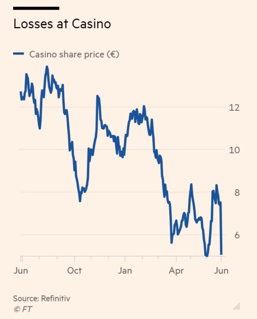 Fa impressione vedere la possibile fine di un gruppo come Casino che, vent’anni fa, avrebbe tanto voluto comprare Esselunga.