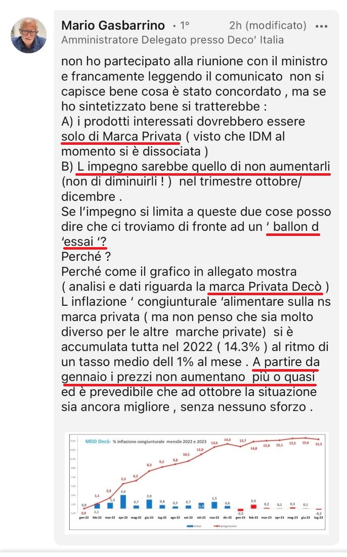 Pensavo “speriamo non finisca per pagare Pantalone” perchè nuove richieste di contributi promozionali ai fornitori finirebbero per generare ulteriore inflazione.