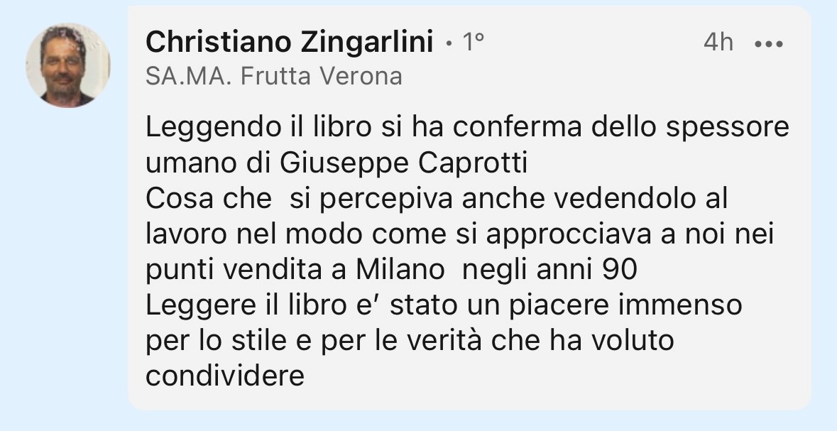 Leggendo il libro si ha conferma dello spessore umano di Giuseppe Caprotti, cosa che si percepiva anche vedendolo al lavoro nel modo come si approcciava a noi nei punti di vendita a Milano negli anni ’90.