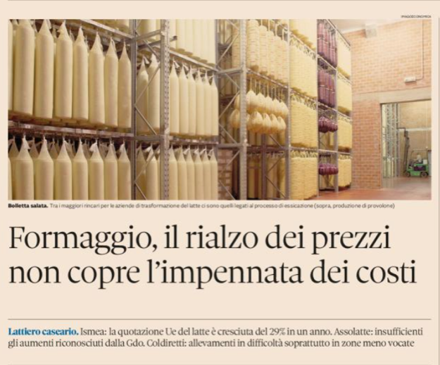 b) i costi salgono più dei prezzi al pubblico, ad esempio : uova italiane in crisi: salgono vertiginosamente i costi di produzione, ma non altrettanto i prezzi e formaggio, il rialzo dei prezzi non copre l’impennata dei prezzi.