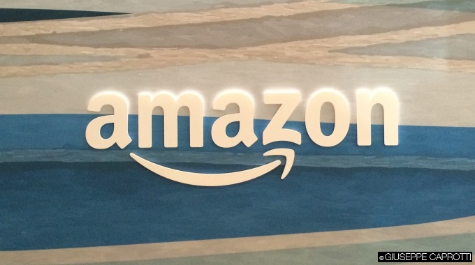 Foto del logo di Amazon scattata nei suoi uffici, a Seattle, nel 2016.