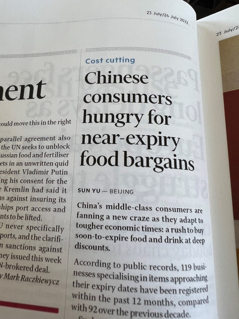 La classe media cinese si affretta a ad adattarsi ai tempi più difficili di crisi che deve affrontare e compra cibo e bibite vicino alla scadenza nei discount.