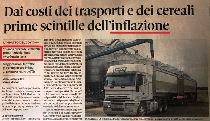Sotto : Il Sole 24 ore del 18 aprile 2020