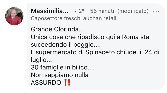 Clorinda Esposito, ormai ex buyer di Auchan ha commentato così (Da LinkedIN):