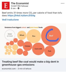 Sotto : il peso delle emissioni dovute alla carne che potrebbero arrivare fino al 20% delle emissioni globali