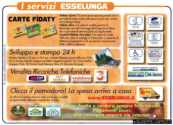 Come sono dati per assodati nelle gallerie dei superstore, i bar ( con insegna Atlantic, una sessantina ad oggi), le strutture per accogliere i bambini o il fatto di poter acquisire con i punti, e a volte un piccolo contributo, gli articoli del catalogo Fidaty che al costo valevano nel 2003 80,9 mio. di € (fonte: piano Marketing Esselunga 2004)…