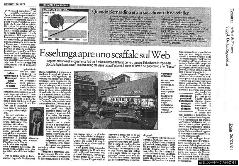 La nota di Bernardo Caprotti è del 2001 , anno nel quale :